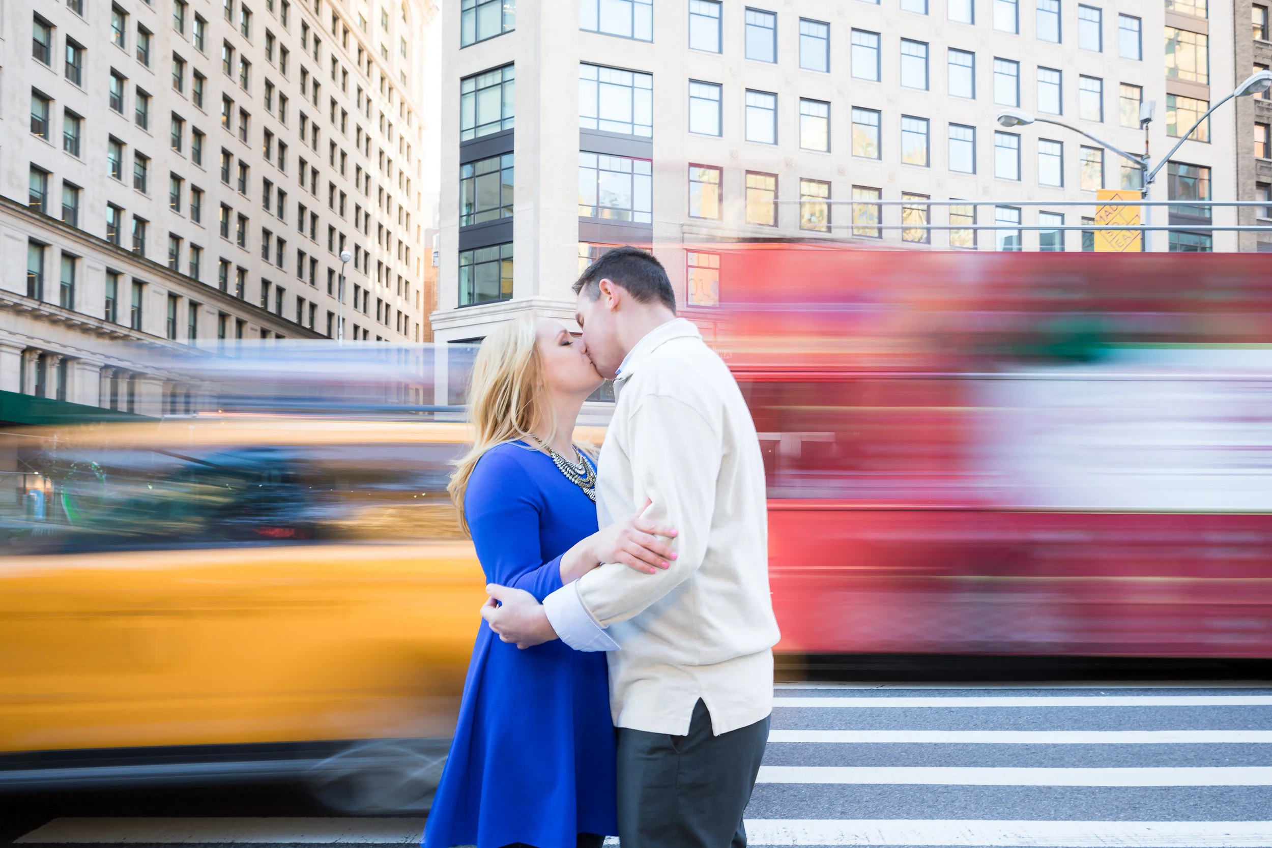 Central Park engagement photo in New York City (NYC) with the famous bubbles by Bethesda statue.